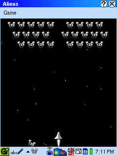 ![]() AliensPort of a Galaxian type game for the Agenda VR3 (which I have also owned.) Works fine magnified. Licence: GPL Works in 640x480: No, works magnified only Download: aliens_1.0.0_arm.ipk Package Information: Version: 1.0.0 Depends: qpe-base ($QPE_VERSION) Priority: optional Section: Games Maintainer: Robert Ernst | |||